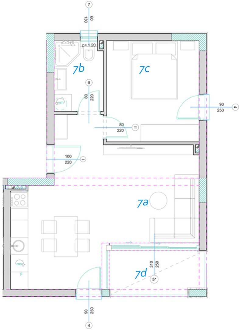 7a. Dnevna, kuhinja, trpezarija, hodnik P= 26.35 m2 O= 27.82 m Keramika Akrilna latex boja Akrilna latex boja