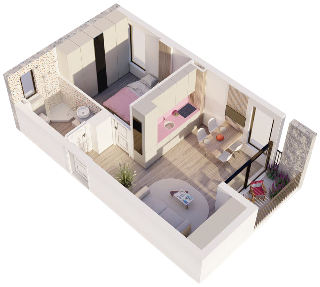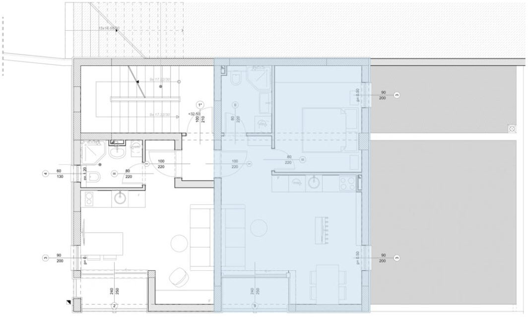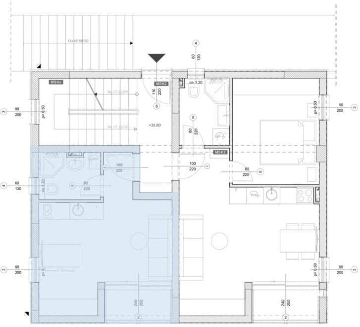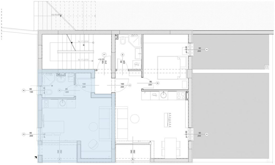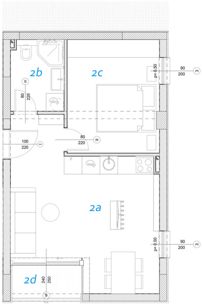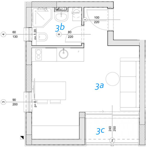 3a. Dnevna i noćna zona P= 17.67 m2 O= 21.04 m Keramika Akrilna latex boja Akrilna latex boja