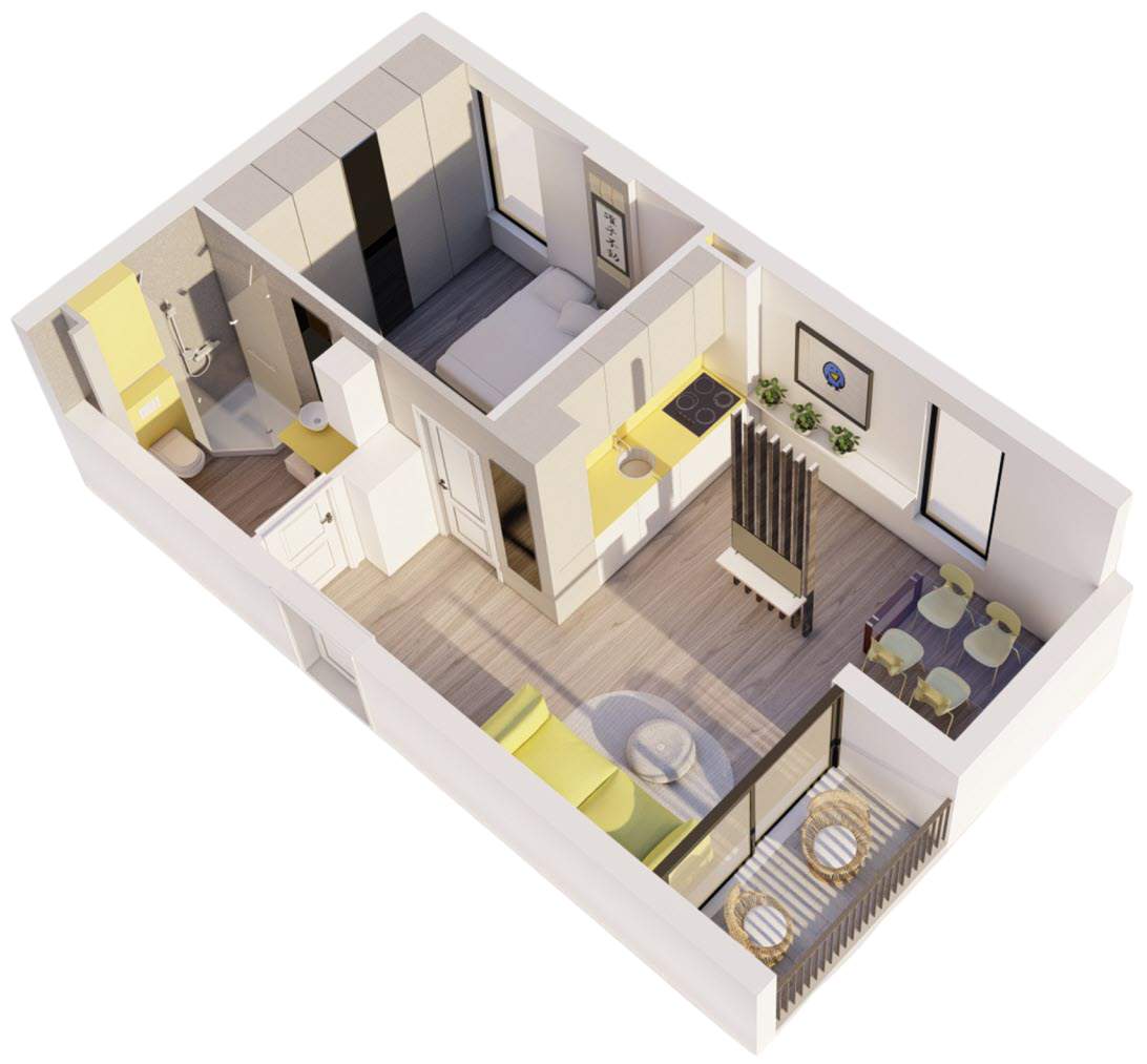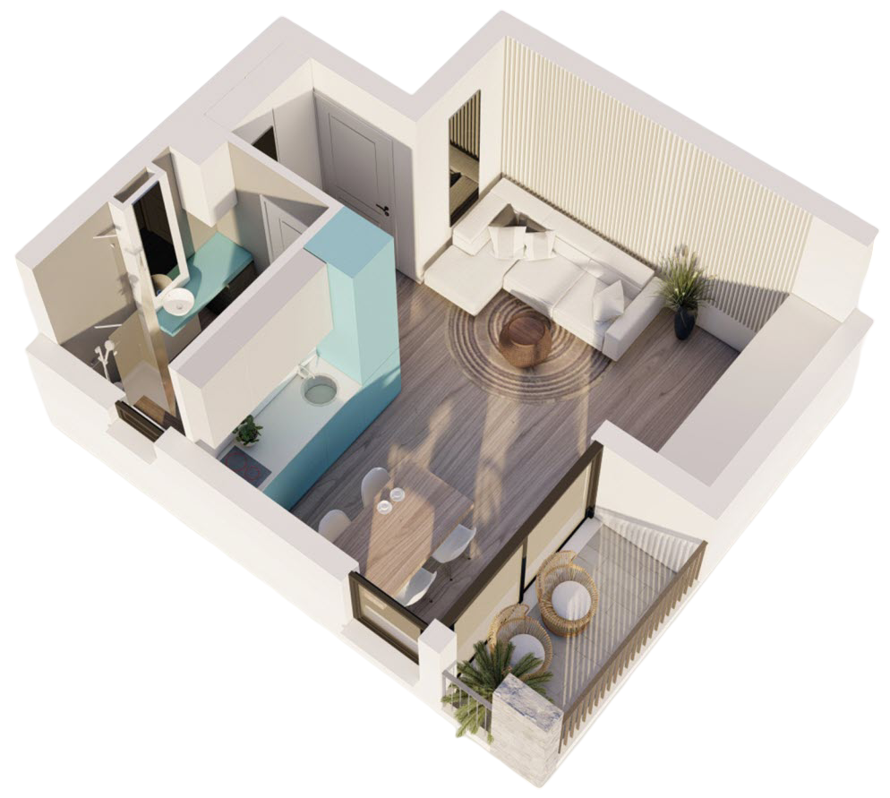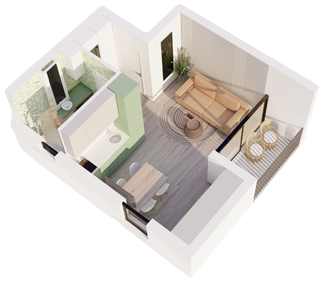 3a. Dnevna i noćna zona P= 17.67 m2 O= 21.04 m Keramika Akrilna latex boja Akrilna latex boja
