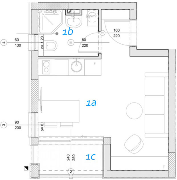 1a. Dnevna i noćna zona P= 17.67 m2 O= 21.04 m Keramika Akrilna latex boja Akrilna latex boja