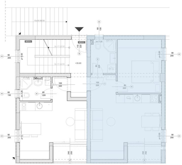 5a. Dnevna, kuhinja, trpezarija, hodnik P= 27.95 m2 O= 27.54 m Keramika Akrilna latex boja Akrilna latex boja