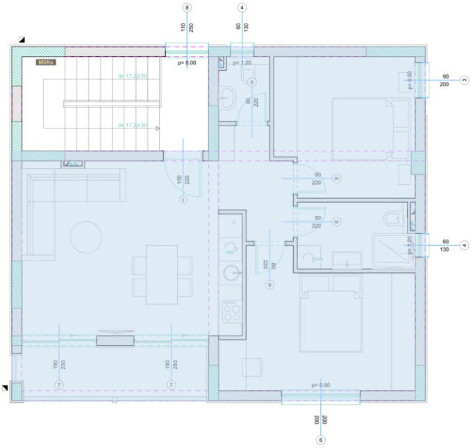 2a. Dnevna, kuhinja, trpezarija, hodnik P= 22.51 m2 O= 21.84 m Keramika Akrilna latex boja Akrilna latex boja