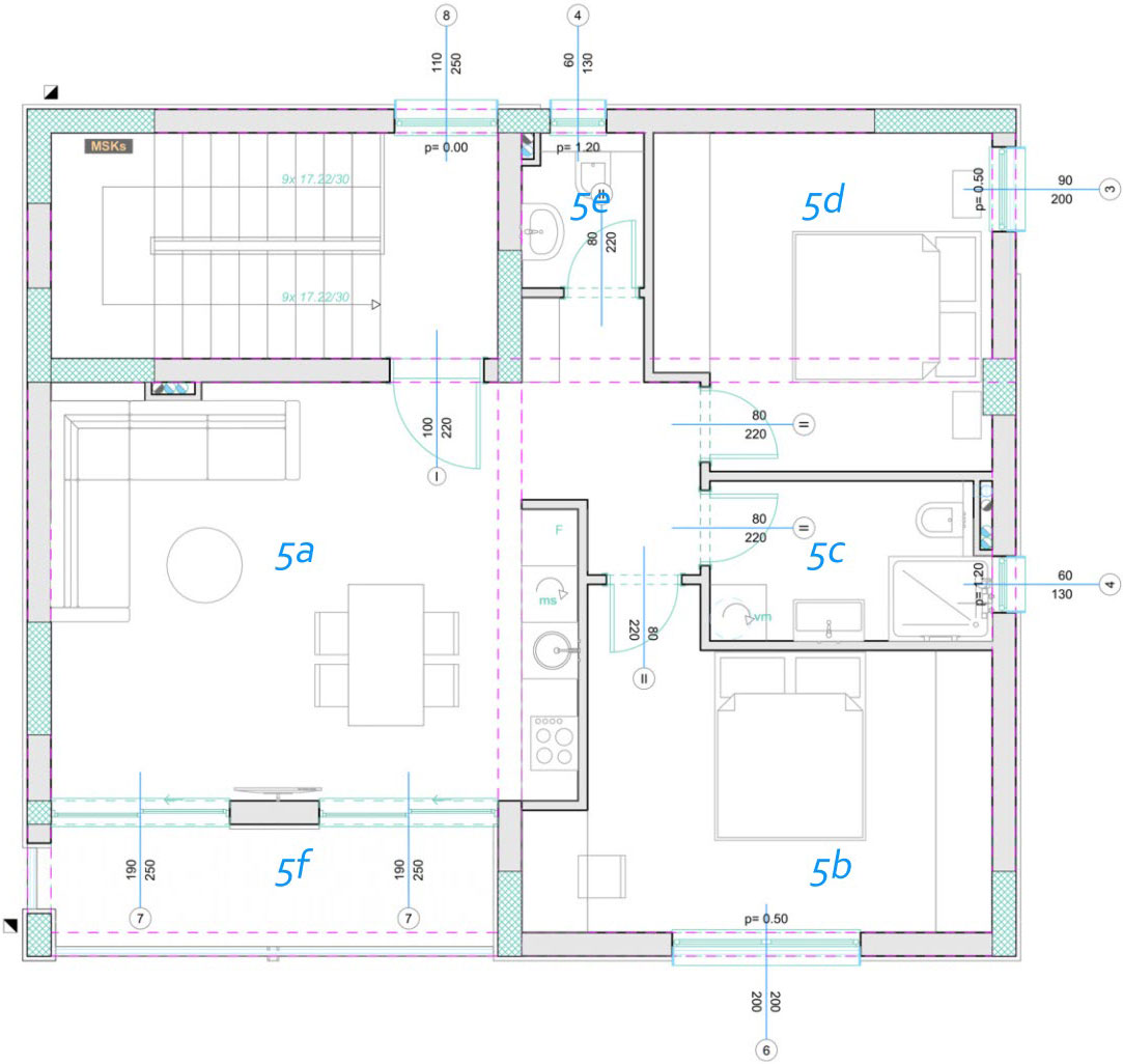 5e. Toalet P= 1.75 m2 O= 5.34 m Keramika Keramika Akrilna latex boja
