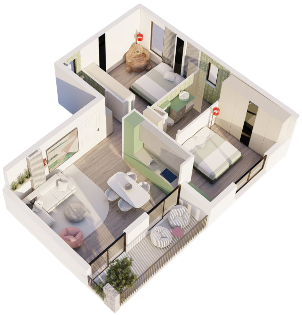 2c. Spavaća soba P= 11.44 m2 O= 13.84 m Keramika Akrilna latex boja Akrilna latex boja